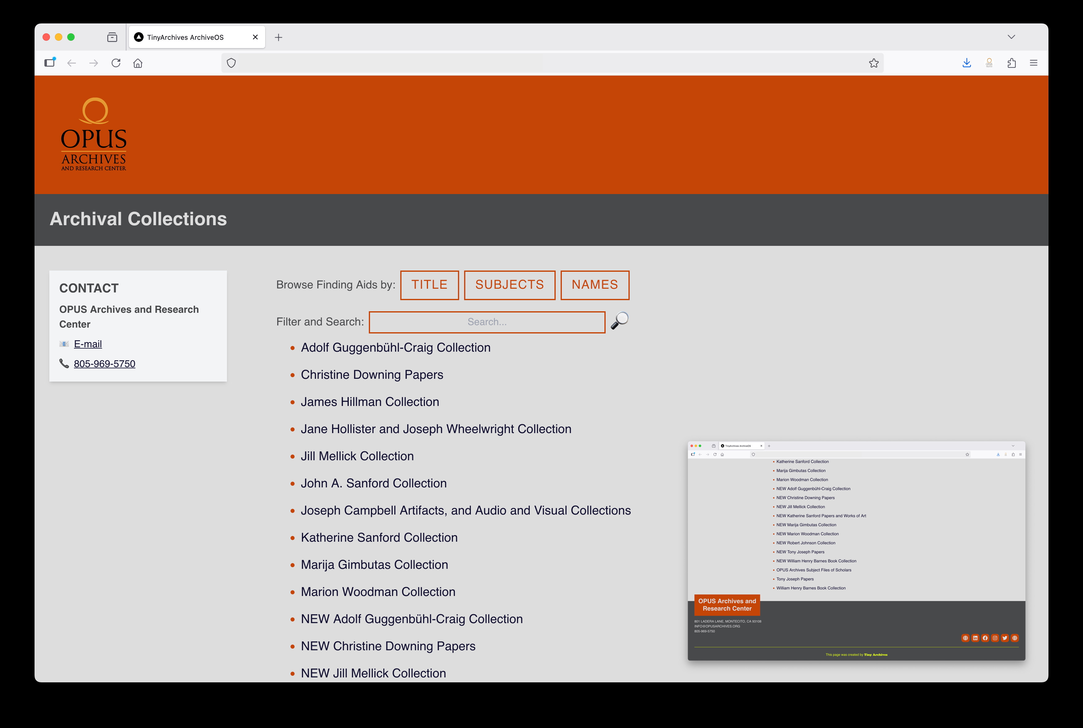 11th hour update: Updated finding aid collection inventories for the Adolf Guggenbühl-Craig Papers, Katherine Sanford Papers and Works of Art, and Tony Joseph Papers are in progress and nearing completion. These inventories will enhance search and discoverability across our holdings. Next, we will begin applying updates to the collections of Christine Downing, Jill Mellick, and Marion Woodman. The Marija Gimbutas collection, which contains over 300 archival boxes, will follow.